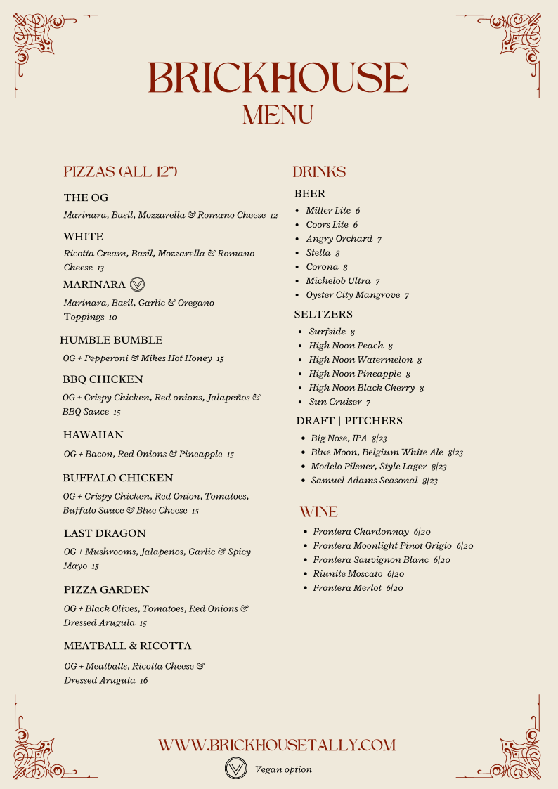 Welcome to Brick House Restaurant & Bar, a hidden gem in Tallahassee that offers a delightful culinary experience. Nestled at 402 W College Ave, this eatery specializes in a diverse menu that caters to various tastes. Start your meal with their House Salad or Caesar Salad, both priced at just $9.00, perfect for a light yet flavorful appetizer.